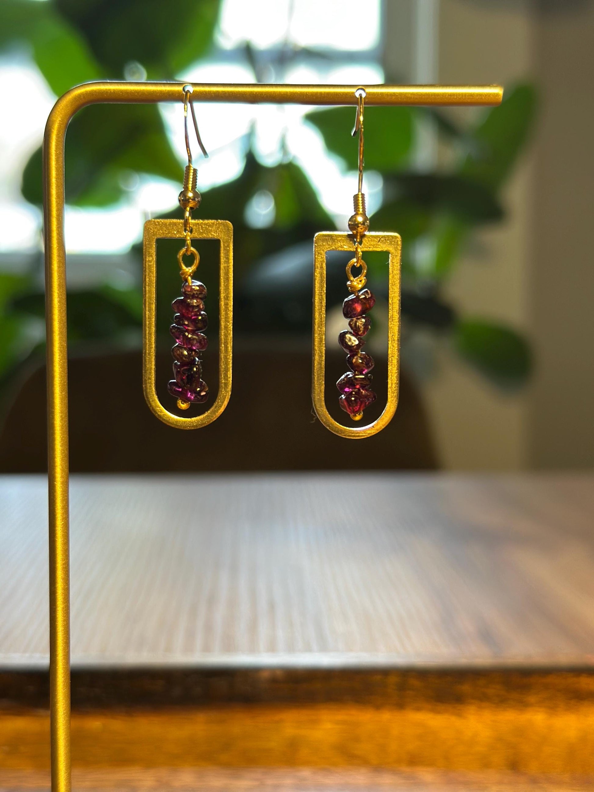 Hand made earrings using glass and metal beads, resin, and natural materials