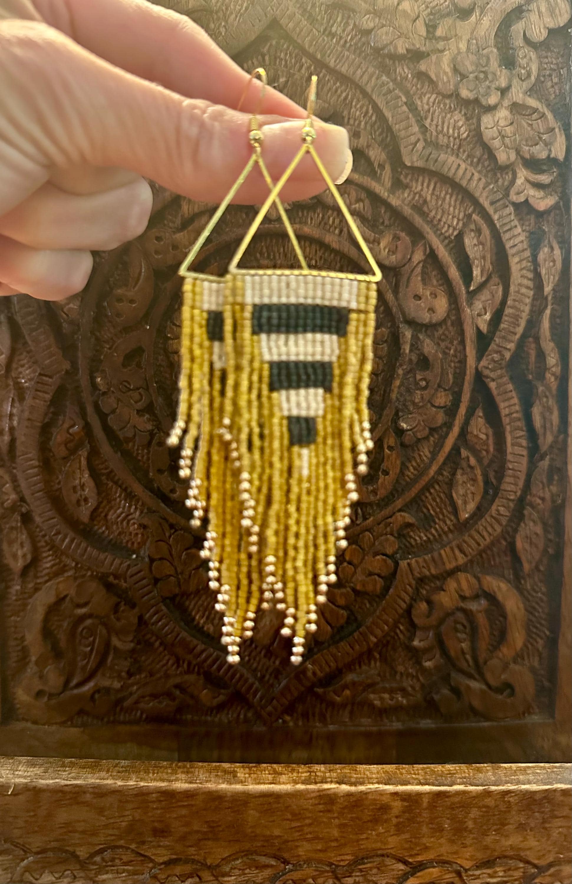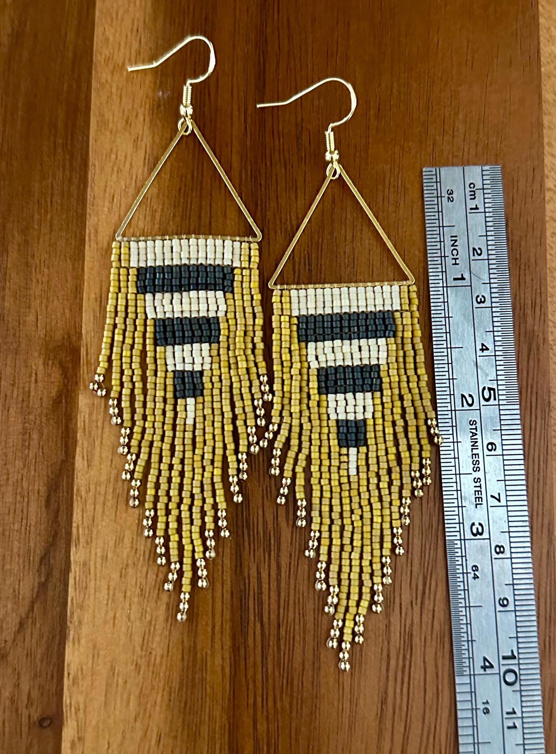 Handmade Miyuki bead and brass fringe earrings