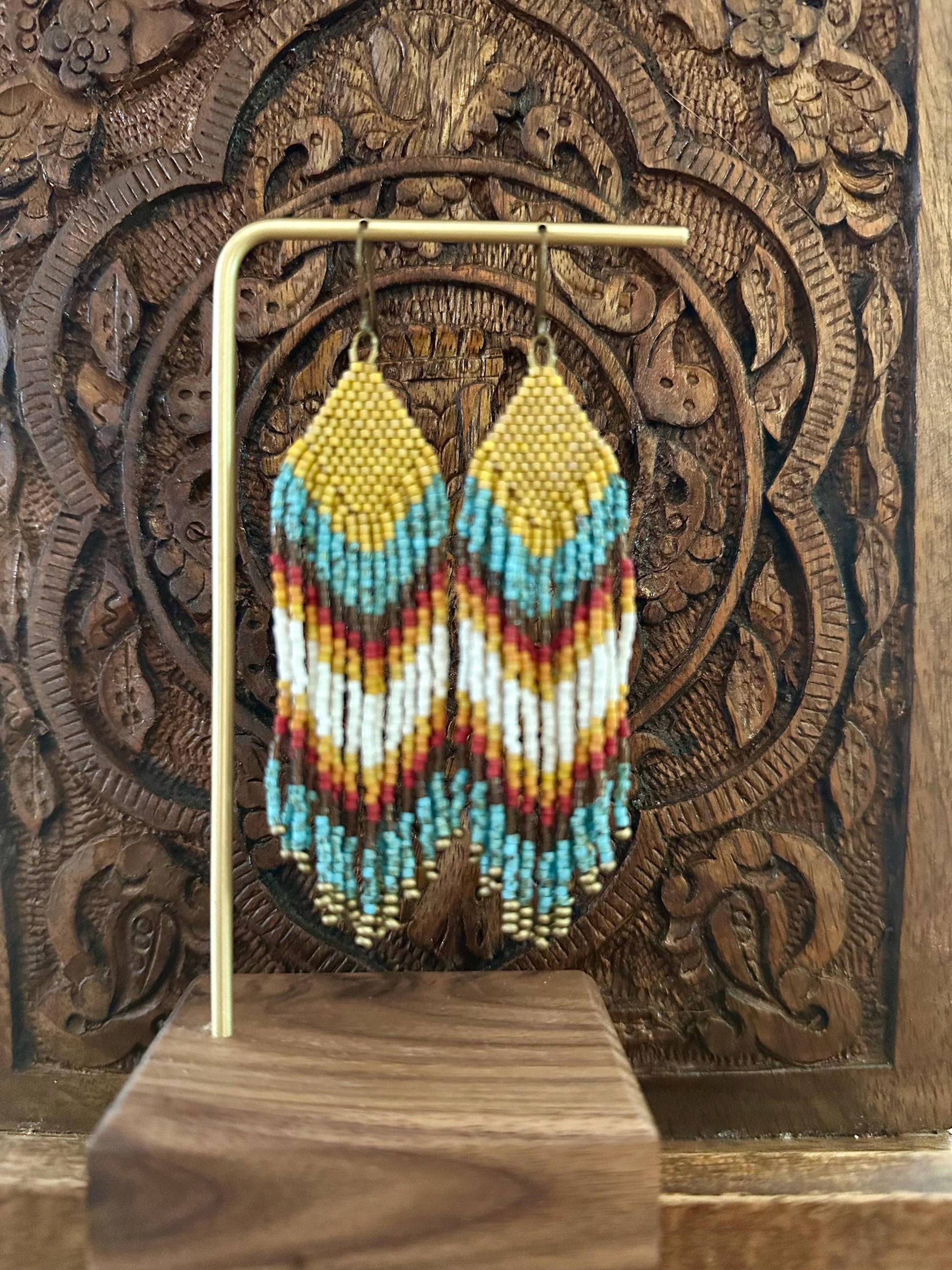 Handmade Miyuki bead and brass fringe earrings