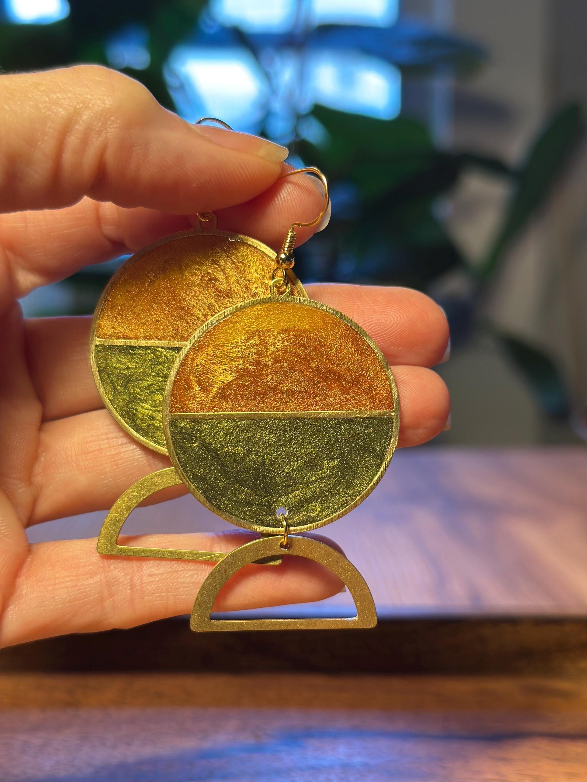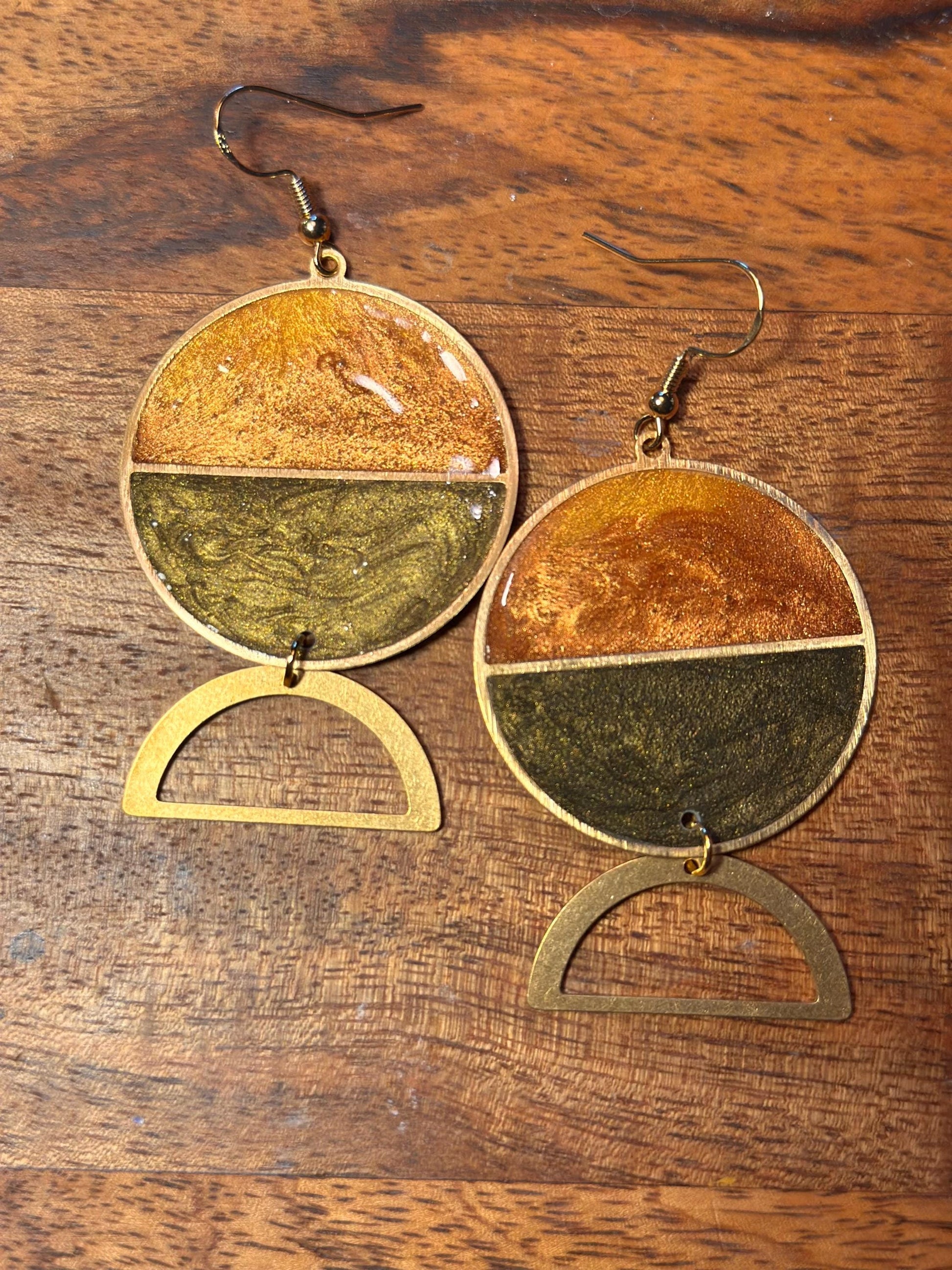 Hand made earrings using glass and metal beads, resin, and natural materials