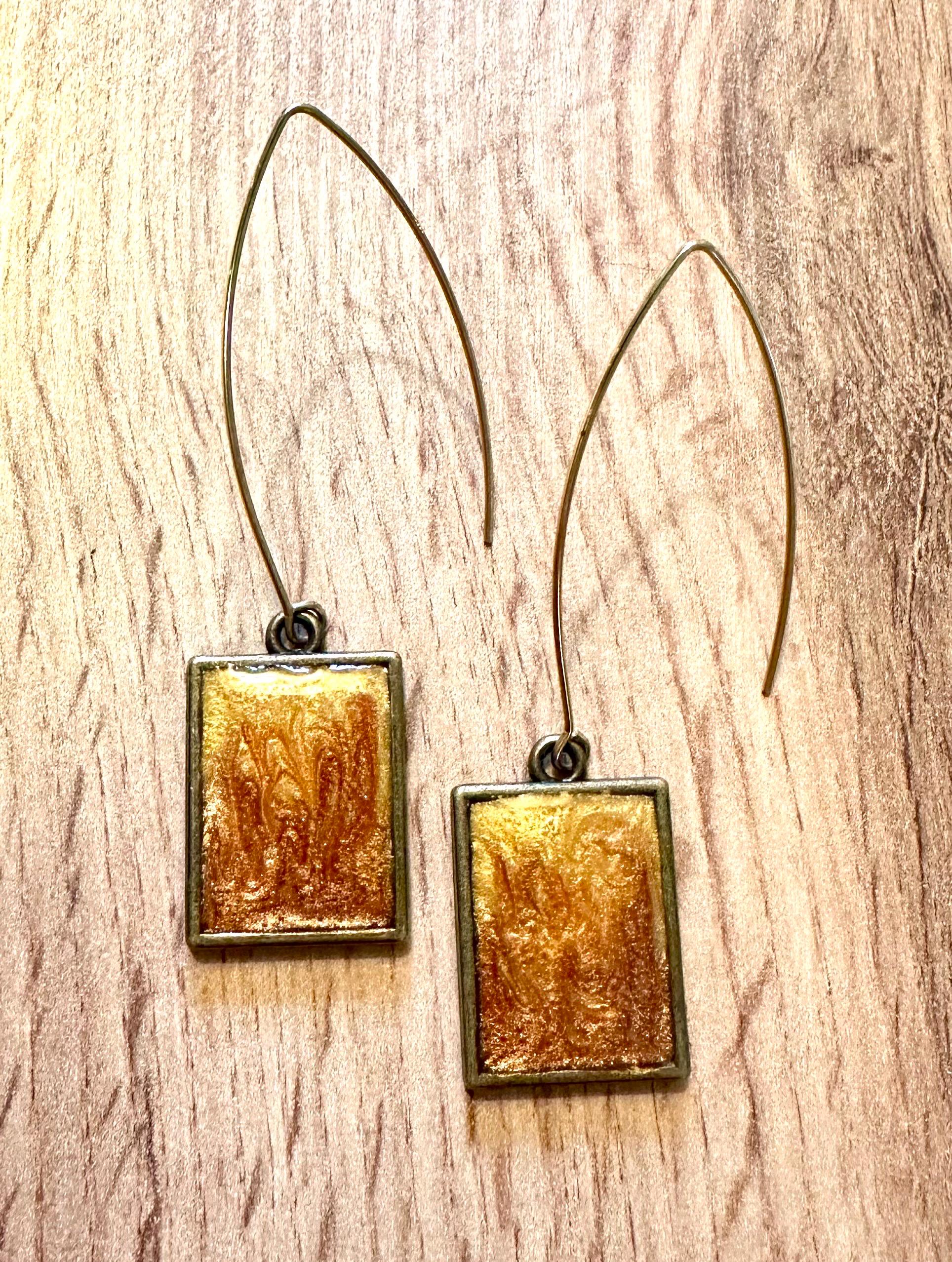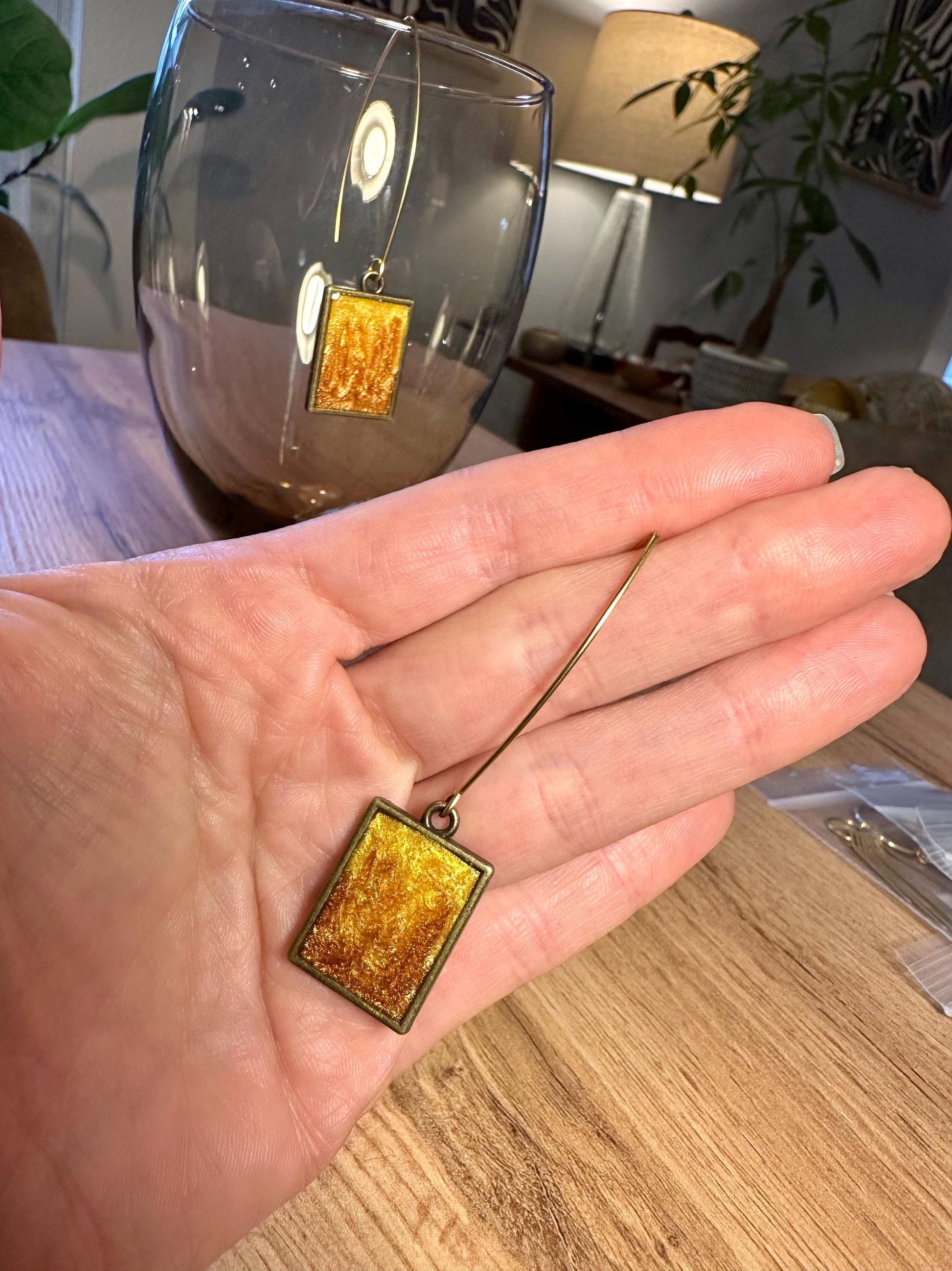 Hand made earrings using glass and metal beads, resin, and natural materials